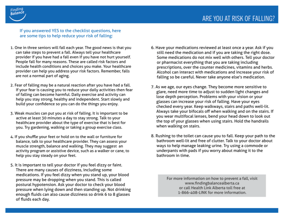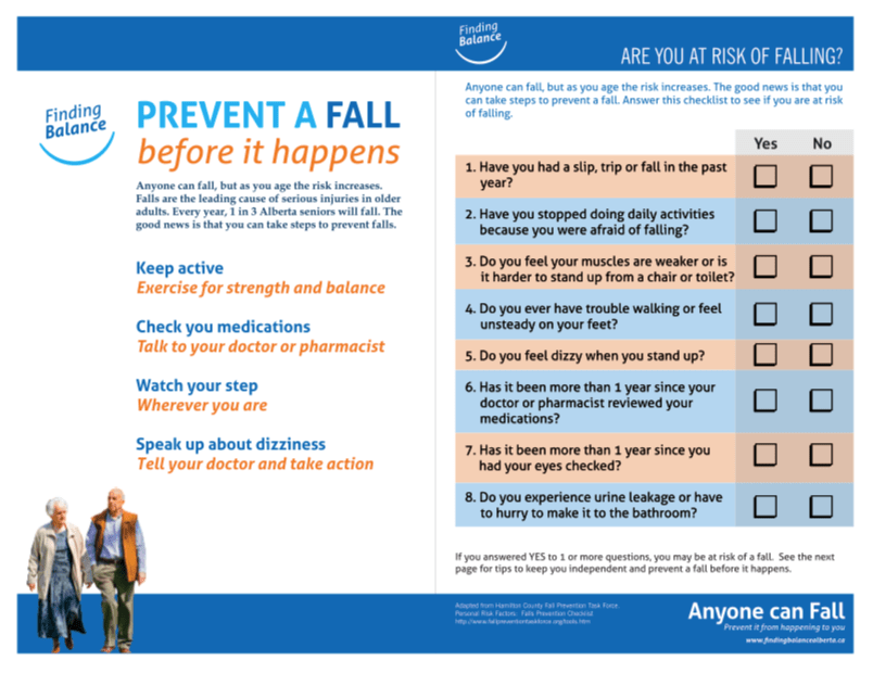 Do you think you are at risk of falling? Fill out the form below and see how you are at risk of falling and what you can do to prevent it.